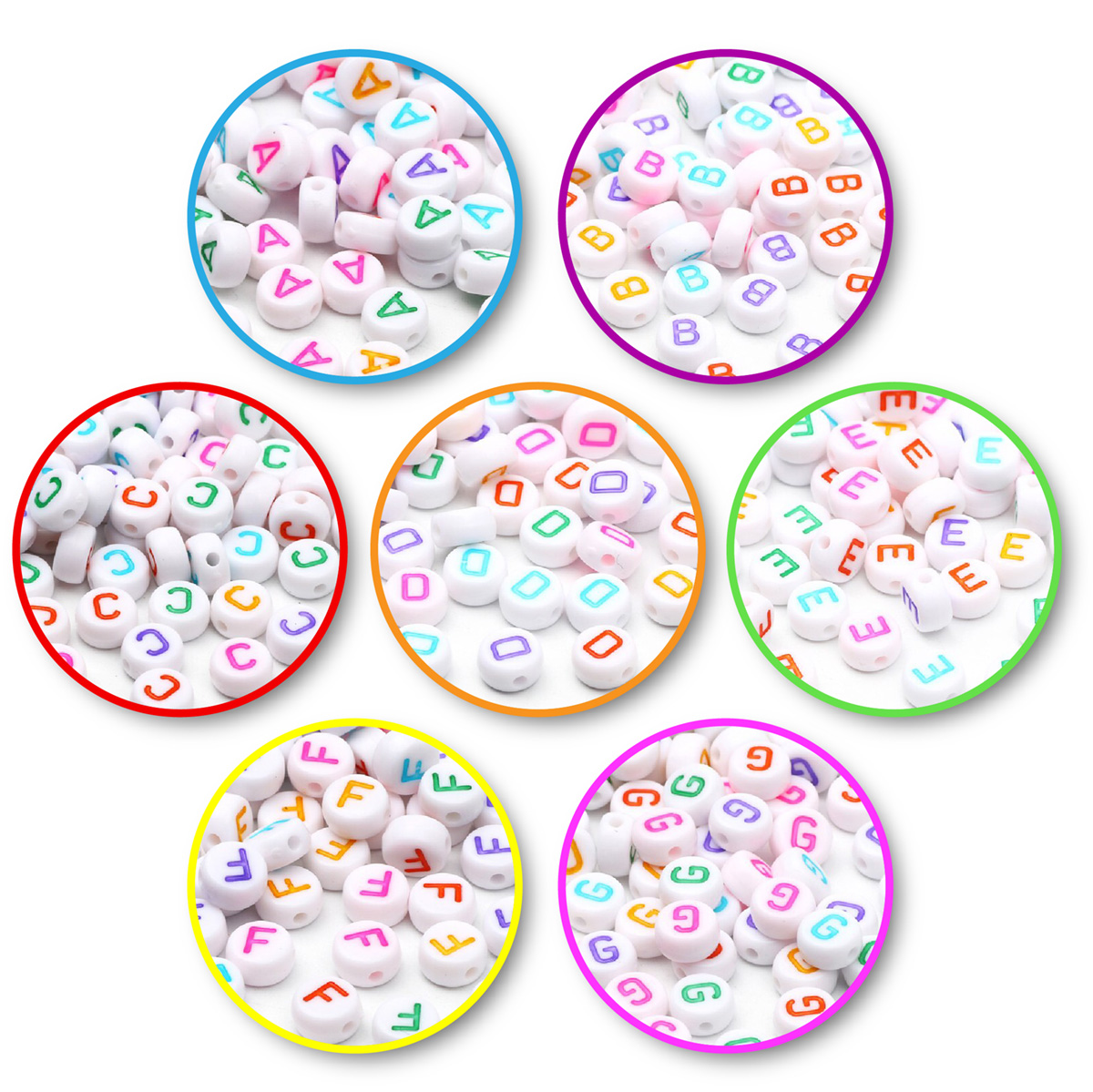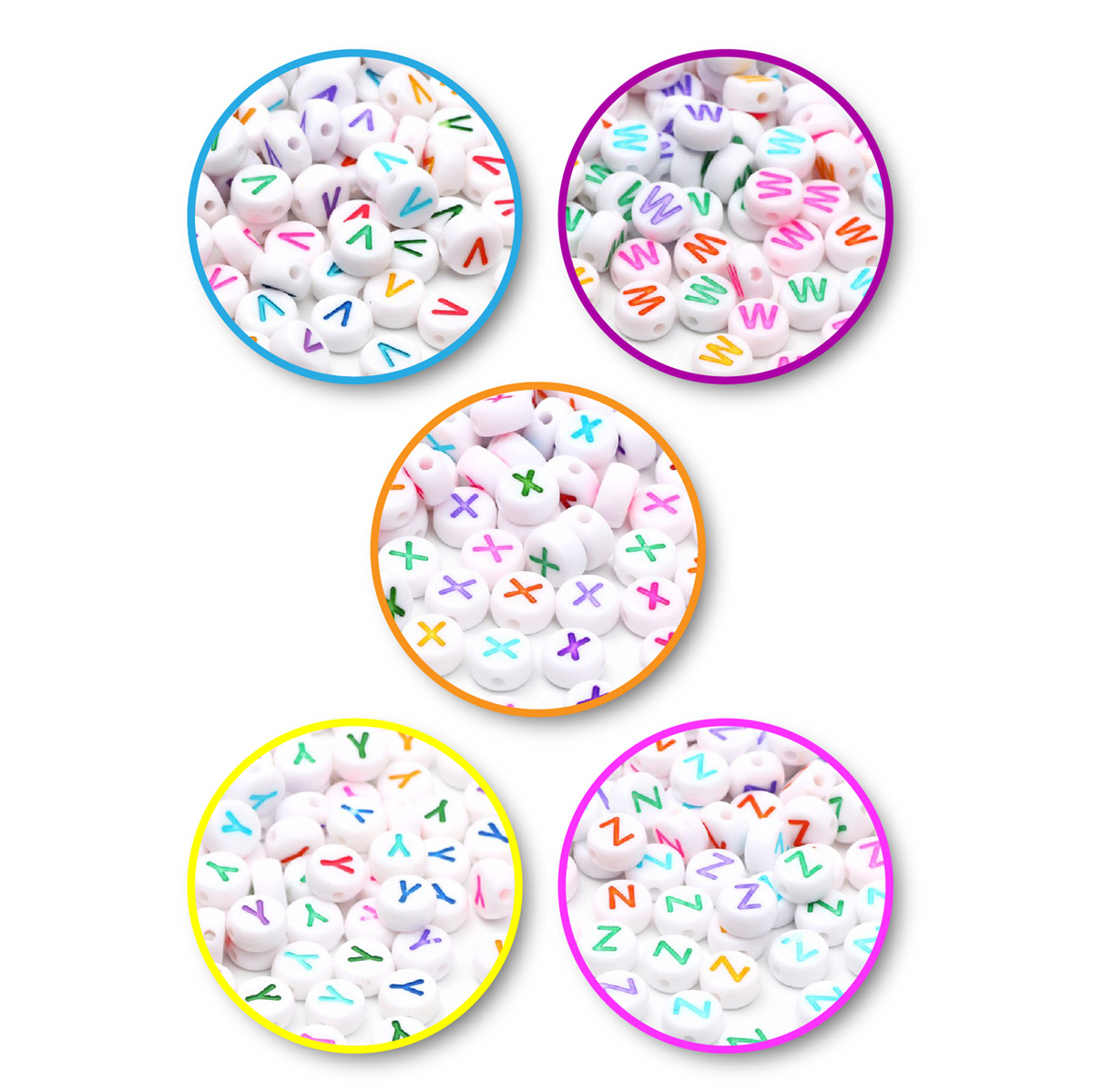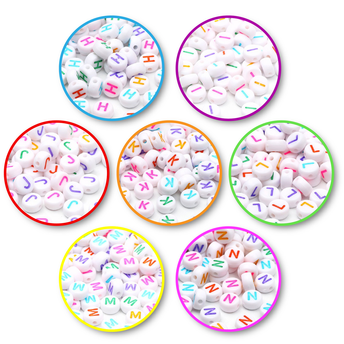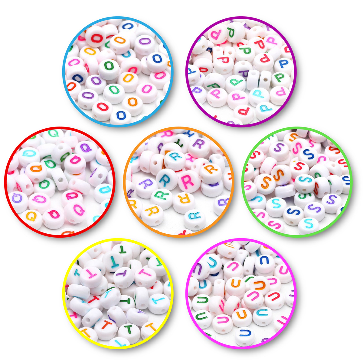 Bílé korálky s barevnými písmenky. Vyberte si svou vlastní skladbu písmenek, a vytvořte jedineční dárek. Jde o velmi lehké korálky se širokými průtahy, kterými můžete návlekový materiál provléknout i vícekrát. Jako návlekový materiál můžete použít silon voskované šňůrky, gumičky. Korálky můžete využít pro tvorbu náramků nebo náhrdelníků s libovolným jménem, nápisem nebo sloganem.