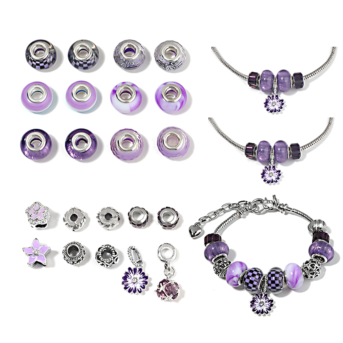 Sada korálku pro jedinečný náramek – fialový